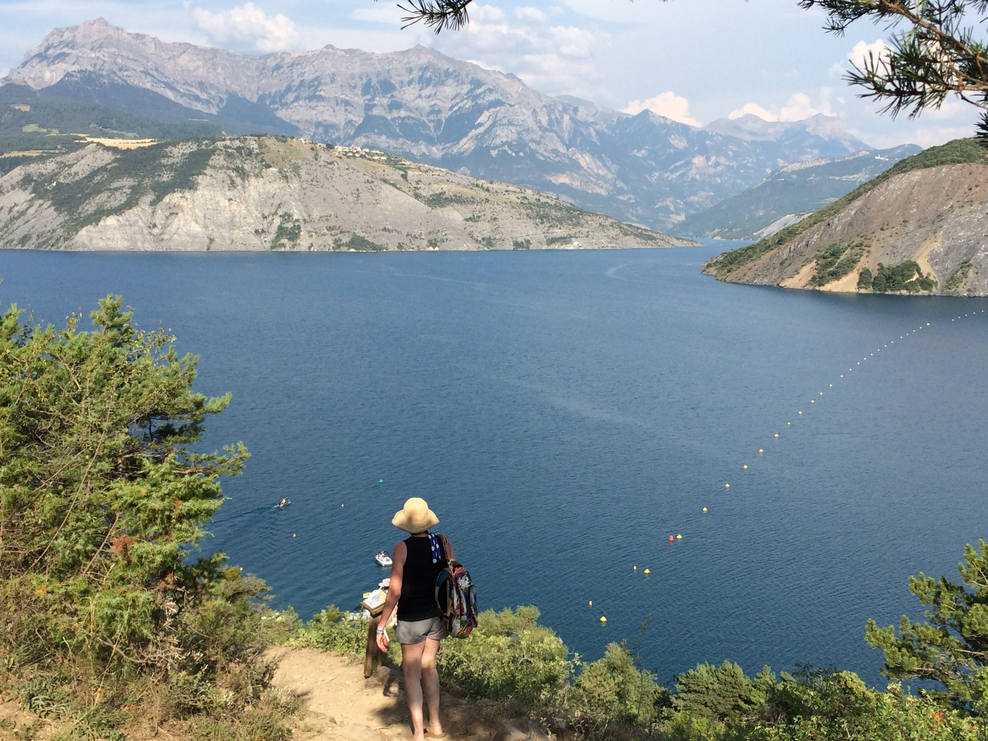 We camped by Lac De Serre-Poncon, a huge artificial and quite spectacular lake which is fed by the rivers Durance and Ubaye. Waters from the lake also drive the largest hydro-electric dam in Europe. Swimming in the lake was bliss but also available if one was so inclined were wind-surfing, water-skiing, diving and boating.