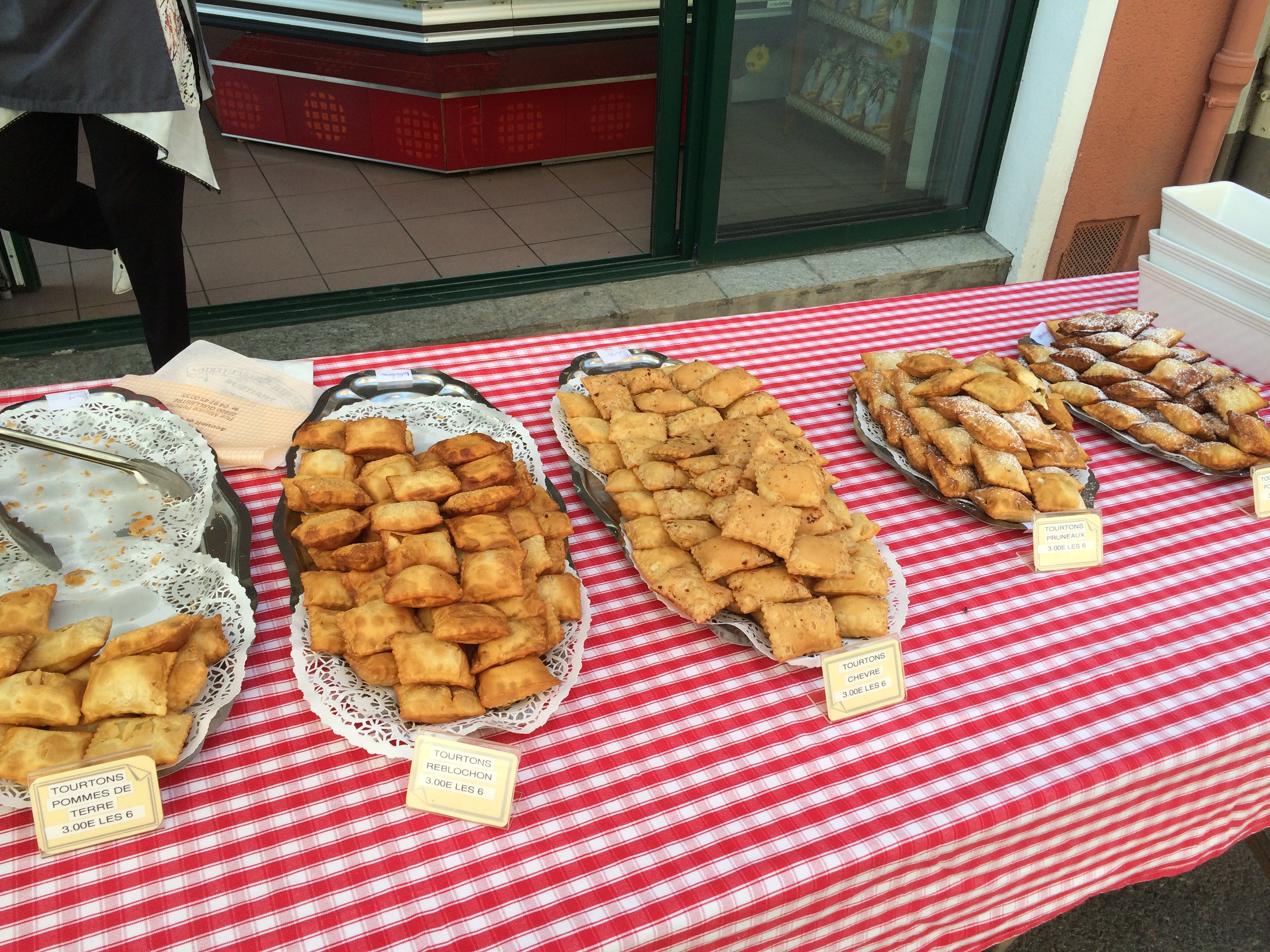 Specialities of the region -  'Tourtons' stuffed with potatoes, Reblochon or goat cheese or prunes. We forgot to buy some.