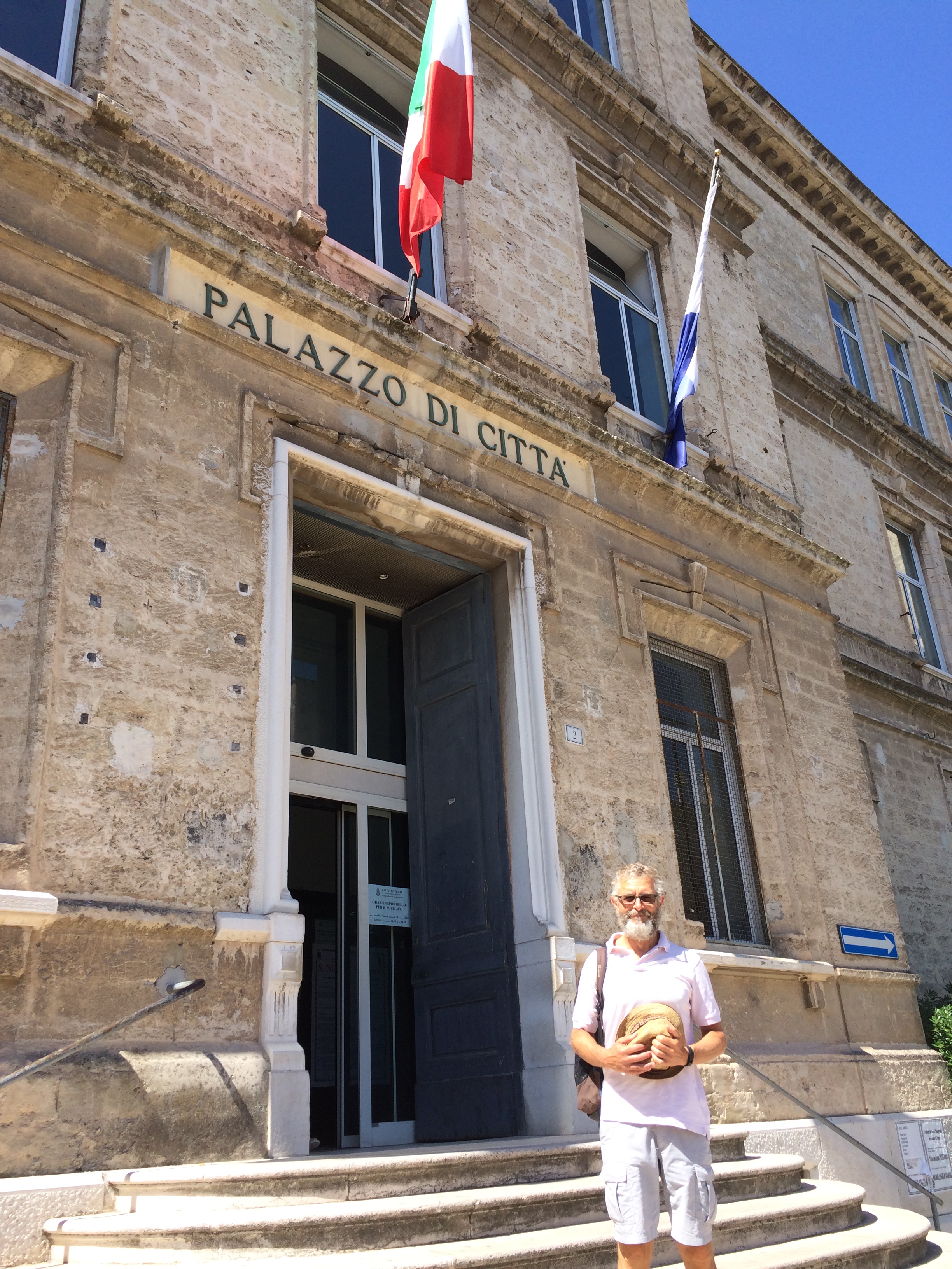 About to enter the ‘Palazzo di Citta’ of the Commune of Trani, a little nervous without knowing why.
