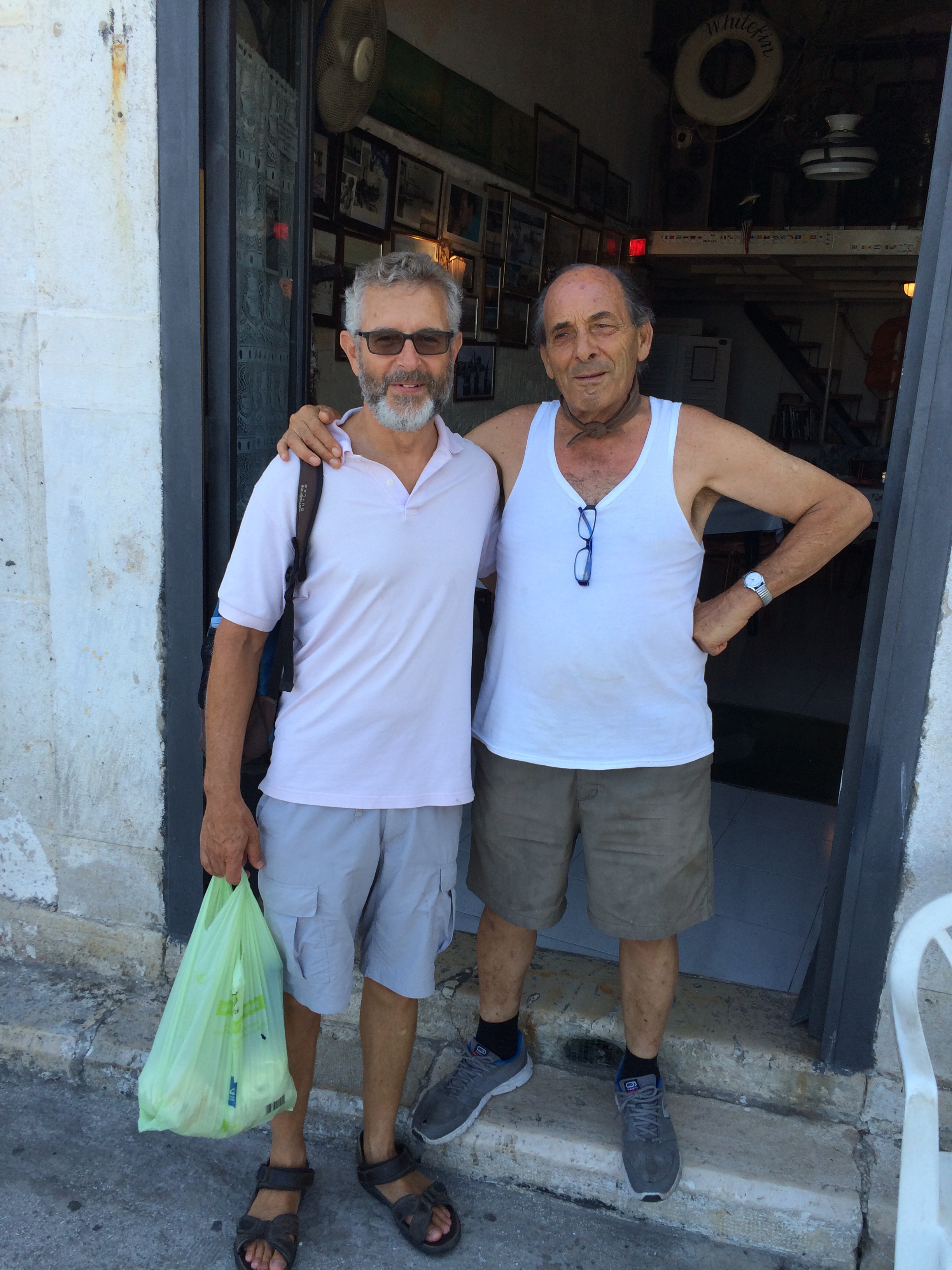 Later that evening, walking past a small unprepossessing cafe/restaurant out of which classical music was blaring, Flavio was stopped by the owner almost as though he had had prior knowledge that he’d pass by and of his search. “Where are you going? Stop.  Let me make you a coffee, or have a bichiere on me.  Who are you?” “Centofanti? ma come no ci sono Centofanti? Come back tomorrow and I’ll take you to some Centofantis.” His name was Marchese and Flavio wasn’t sure whether to be fascinated by or slightly suspicious of his eccentricity.  “Ma si che conosco i Centofanti, they were like us, the Fabiano family.  We both had the best fishing boats.” “I could have guessed you were a Centofanti.  You’ve got a Centofanti face and Centofanti mannerisms.”  “Come back tonight, or tomorrow and I’ll tell you some more.”  Flavio’s sister Laura, who knows Italy better than the rest of us, had told us not to be gullible and always believe what people said and so we were accordingly wary.  He had some interesting old framed photos on the wall and claimed to have met Prince Charles and Lady Di when they stopped in Trani to visit the cathedral shortly after they were married – their first port of call in Italy.