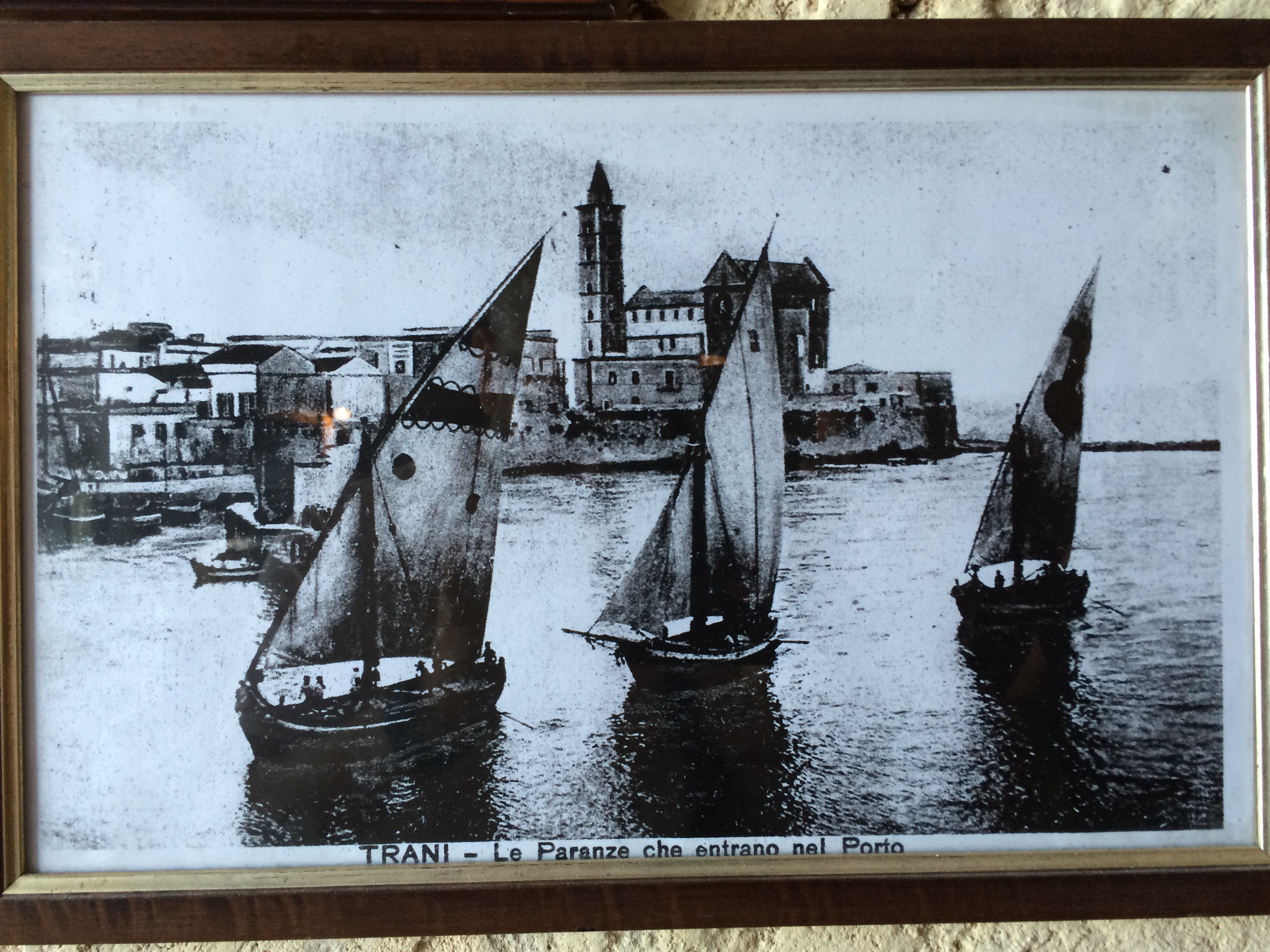 One of the old photos on Marchese's walls showing old 19th century fishing boats in Trani.